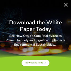 “Is this device Cota®-enabled?” Wireless power demand is growing and will soon be a must-have feature in consumer and commercial electronic products alike. According to Report Insights, the world is experiencing high market adoption of wireless charging solutions. In fact, their research shows that “The global wireless power transmission market is estimated to register a CAGR of 20.5% during 2022-2030.”[1] That translates to $32.6 billion U.S. by the year 2030, only a little more than 6 years away. Businesses must be prepared. Real Wireless Power is power delivered over air and at a distance, without the need for charging pads or batteries. Demand for wirelessly powered products is increasing, due to the drive for sustainability and need for wireless devices in areas with limited wired power networks. Also, according to the report, “wireless power transmission is anticipated to become mandatory … due to the large-scale technology adoption among consumers as well as businesses.” Wireless power as differentiator, a competitive advantage, and a capabilities enhancer … these have been expected, and are often firsts as motivators for early adopters. When wireless power transmission becomes mandatory, that completely changes the game.